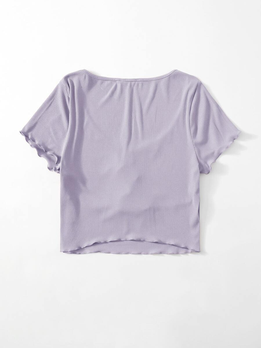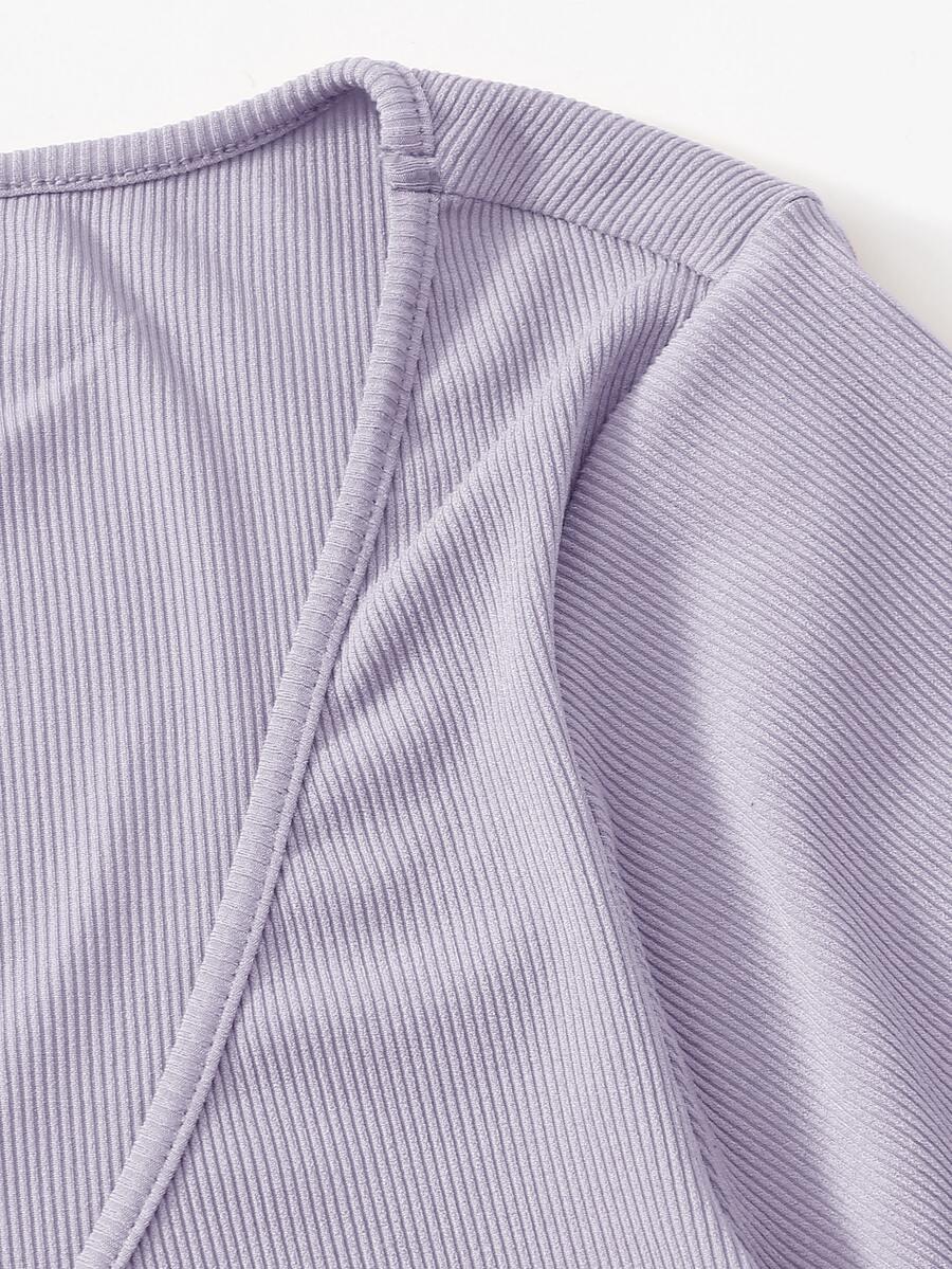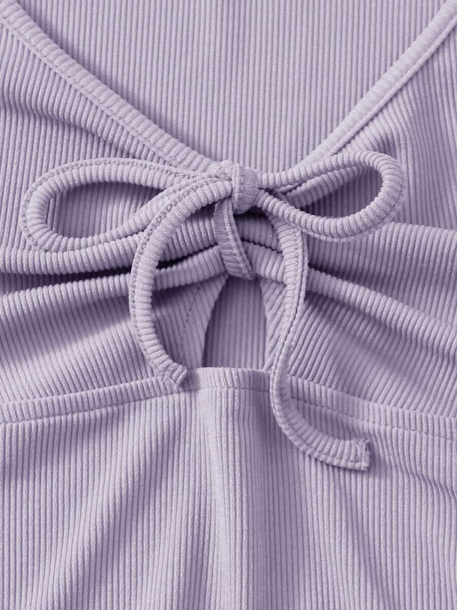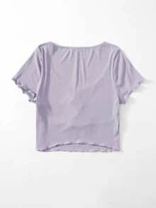 Top ribete en forma de lechuga con abertura con nudo delantero tejido de canalé