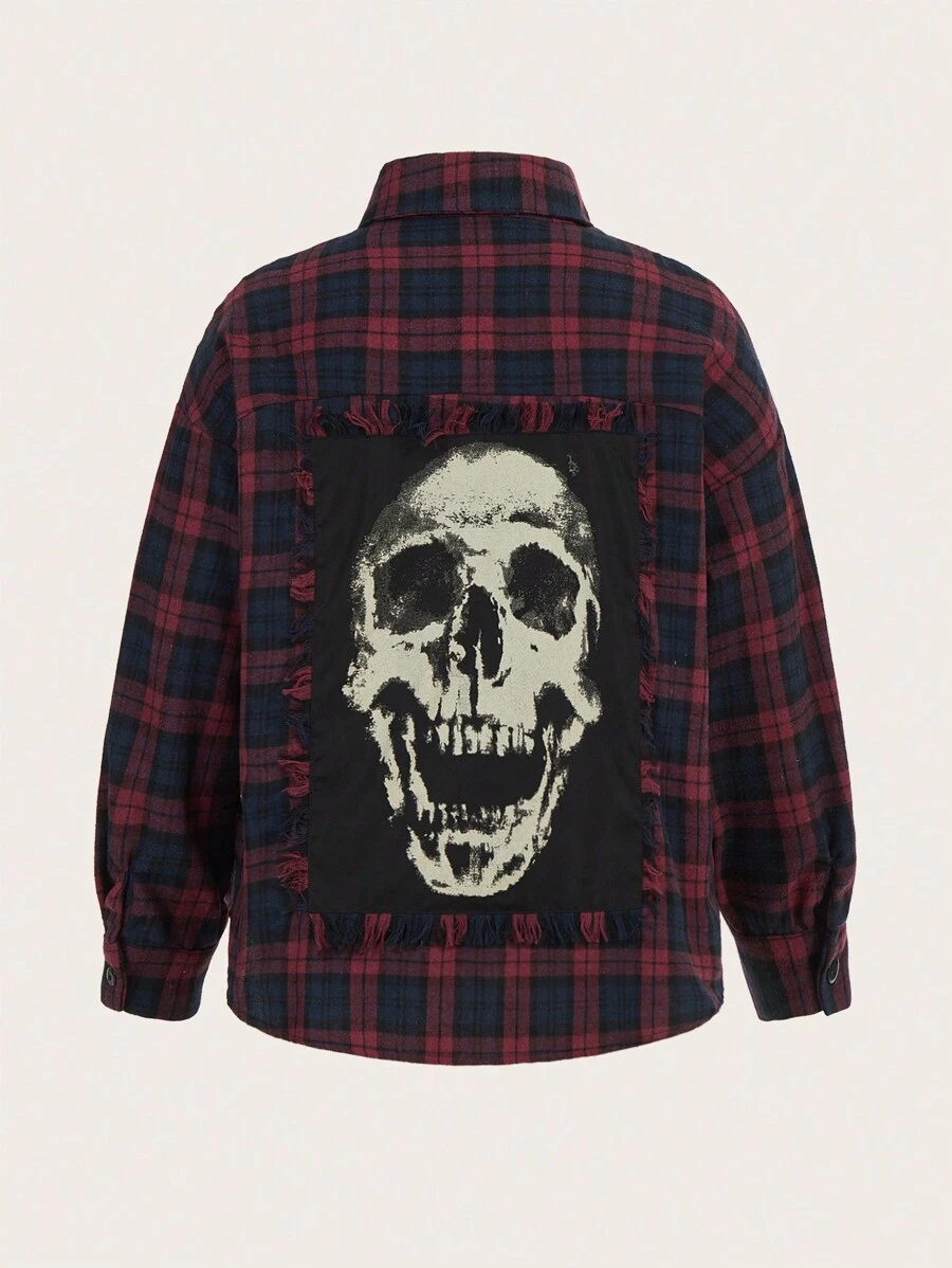 Talla grande Abrigo de cuadros & estampado de cráneo de hombros caídos