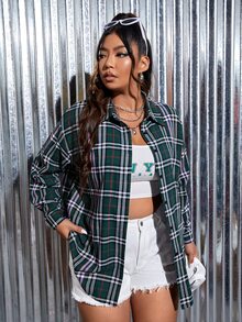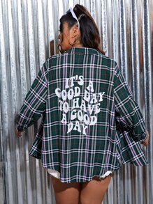 Camisa con estampado de cuadros y slogan de hombros caídos