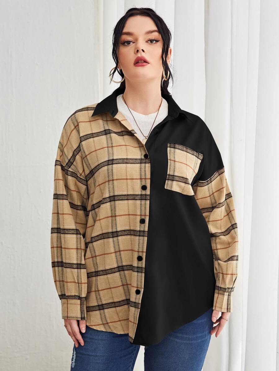 Blusa con bolsillo delantero de hombros caídos de cuadros