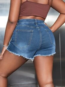 Shorts en mezclilla bajo crudo roto sin cinturón