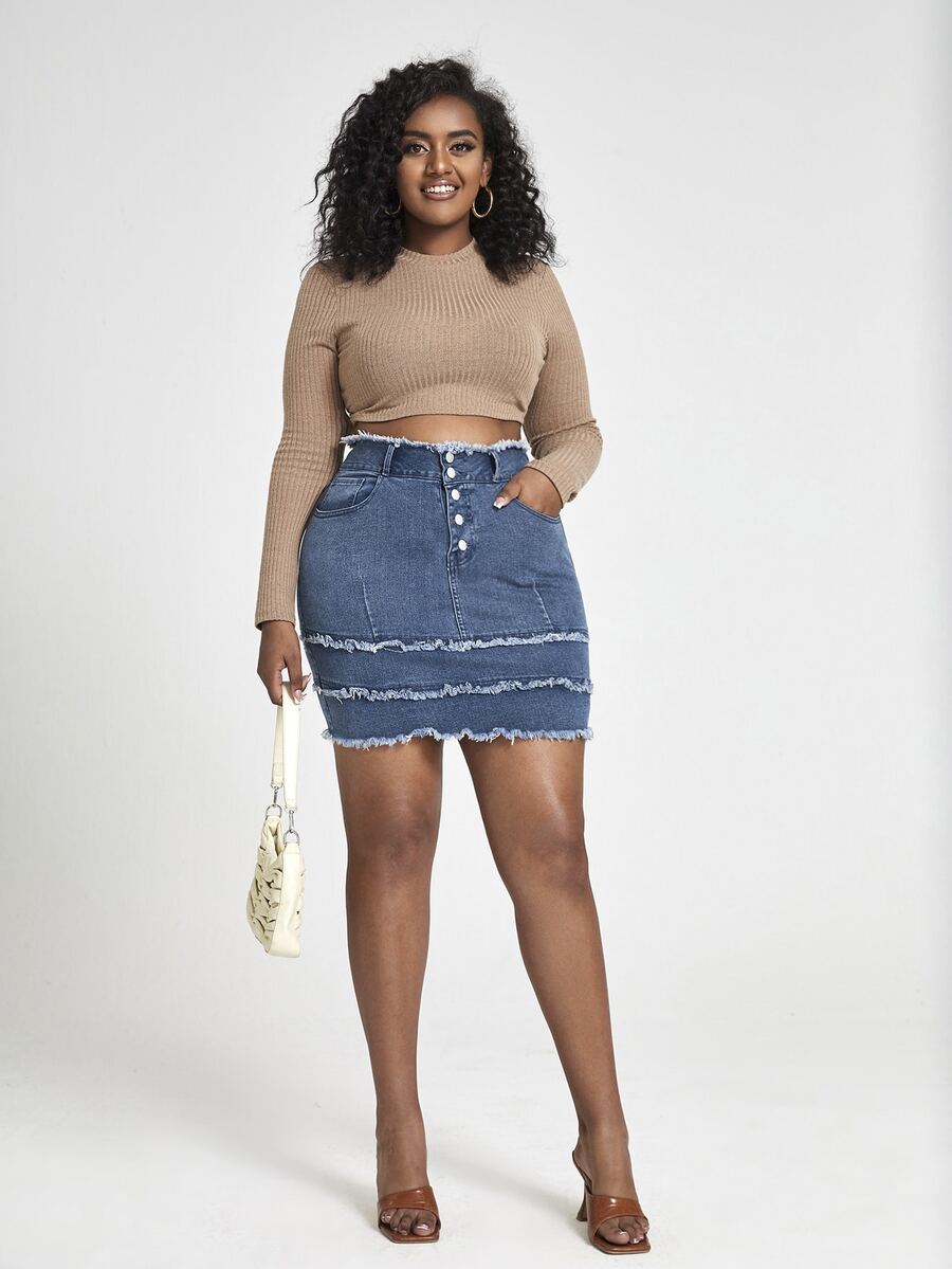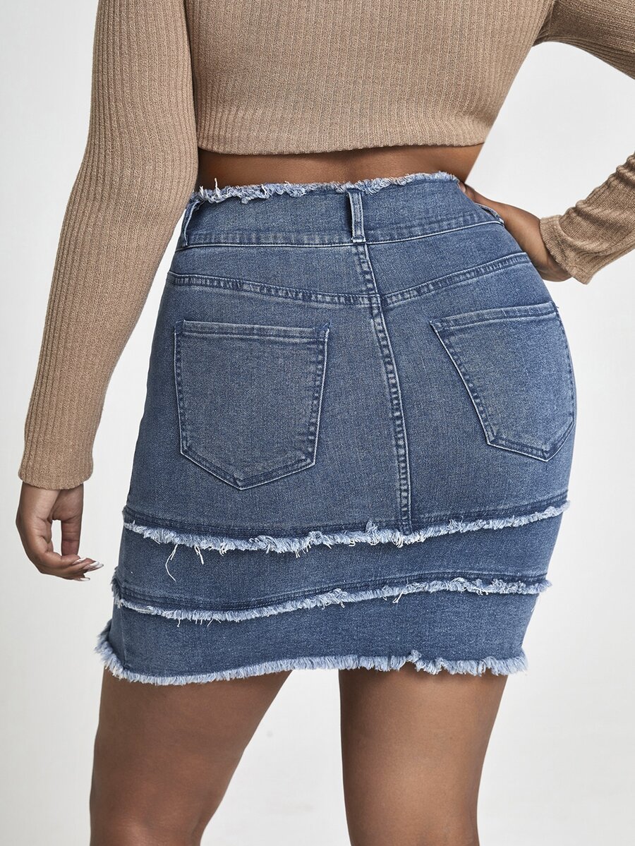Falda en mezclilla ribete crudo bajo a capas