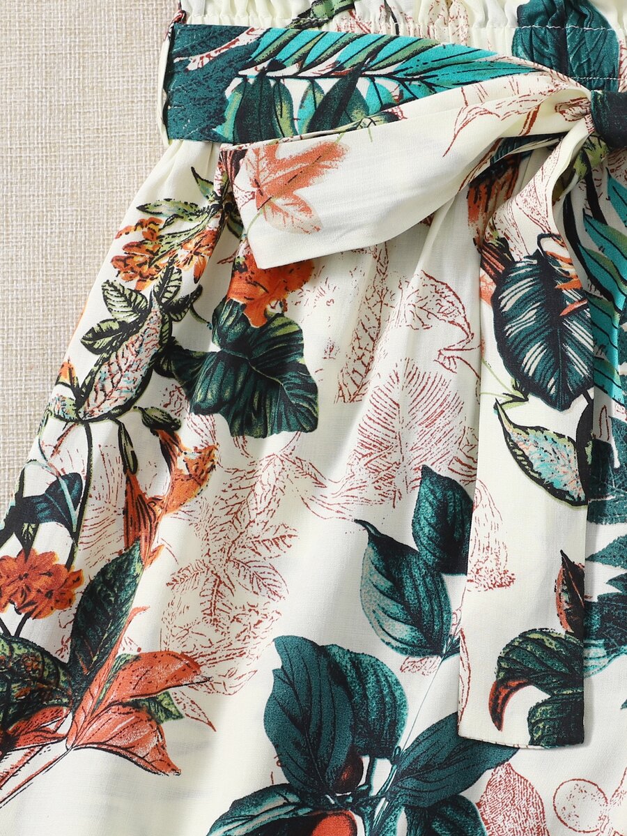 Conjunto top tank tejido de canalé con shorts con estampado tropical