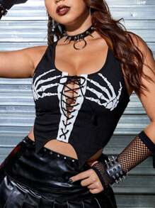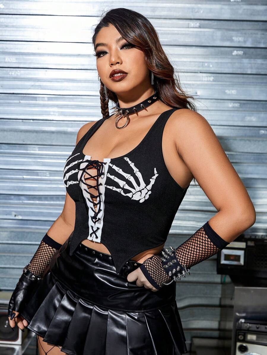 Top tank rock estampado de esqueleto con cordón delantero sin guantes
