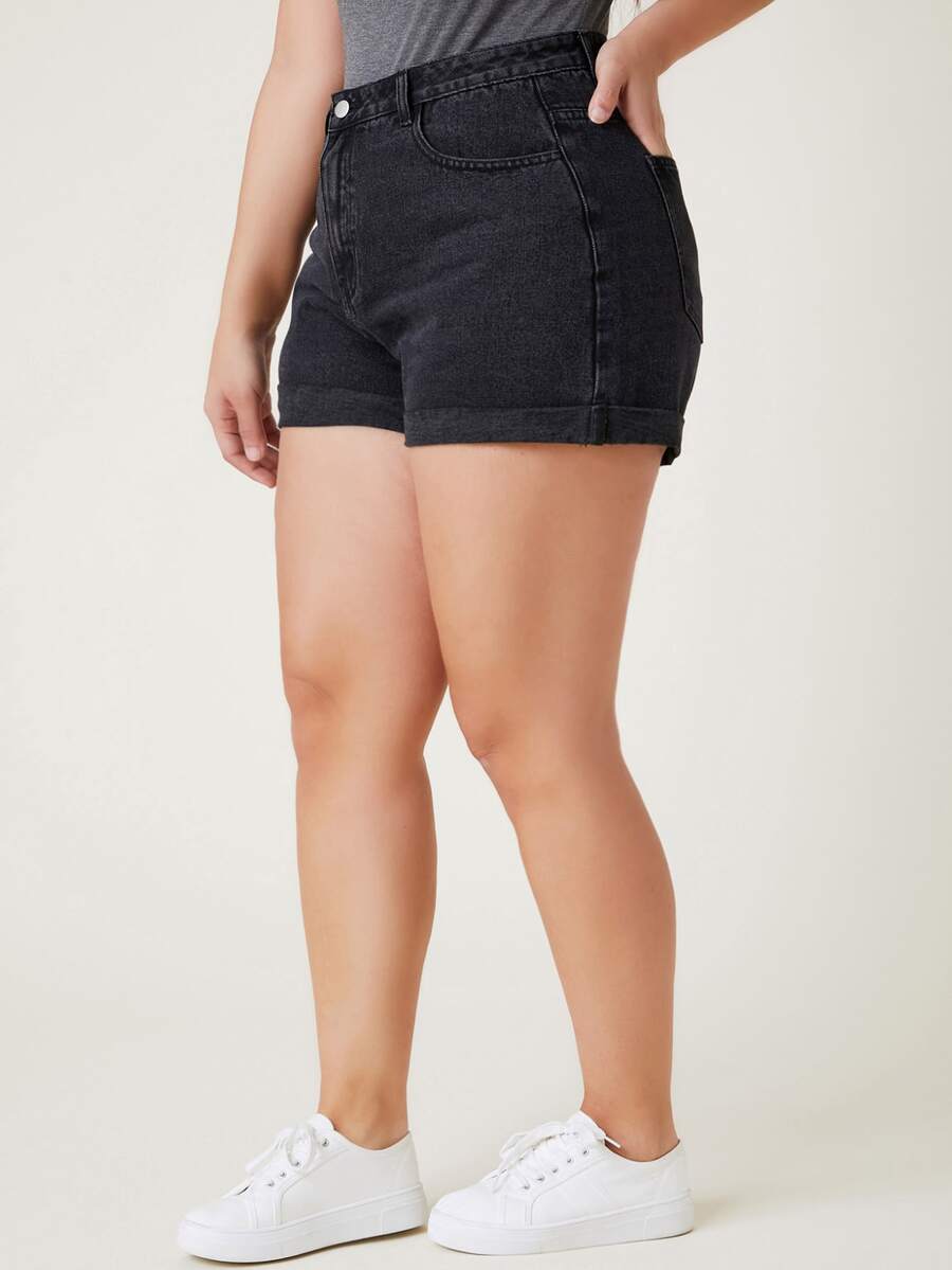 Shorts en mezclilla bajo de doblez con bolsillo oblicuo