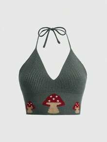 Fairycore Camiseta de tirantes verde con estampado de setas de estilo hada para tallas grandes, Chaleco de punto corto con estampado de setas para vacaciones de tallas grandes, Chaleco de punto de tallas grandes para otoño/invierno, Chaleco de punto con estampado de setas de Halloween de tallas grandes para otoño/invierno, Chaleco de punto de tallas grandes, Camiseta de punto de tallas grandes