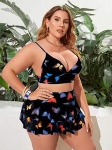 Conjunto de bikini de talla grande con estampado de mariposas con falda de playa, ideal para el verano en la playa