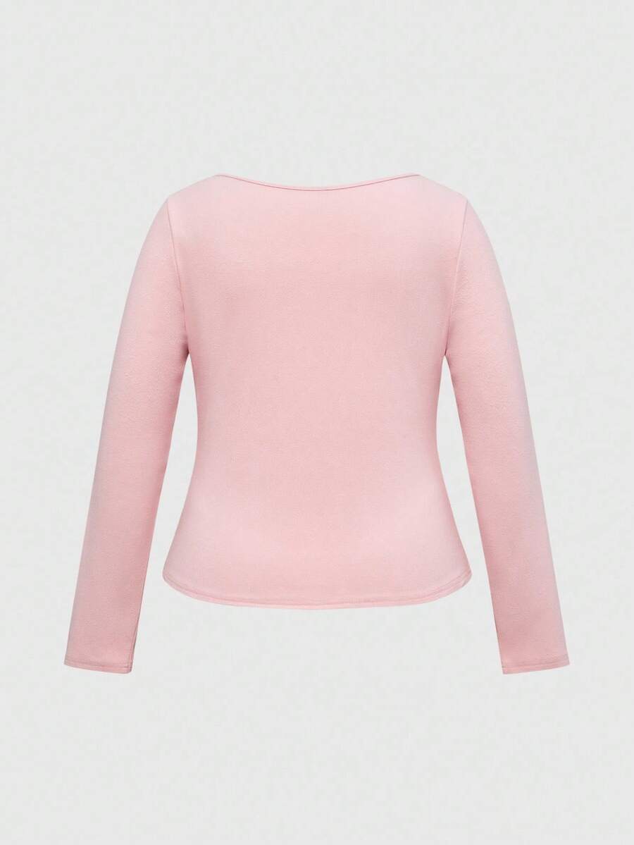 Kawaii Camiseta de manga larga con lazo decorativo 2 en 1 para mujer de talla grande
