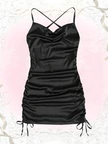 Vestido De Tirantes Liso Y Brillante Para Fiesta De Talla Grande Y Ajustado Al Cuerpo Con Tirantes Finos