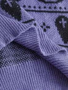 ROMWE Avant Suéter holgado de cuello redondo con estampado de cruz gótica, luna misteriosa y gato, talla grande, otoño/invierno