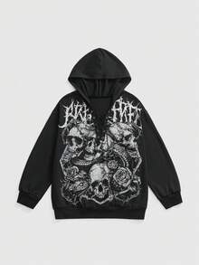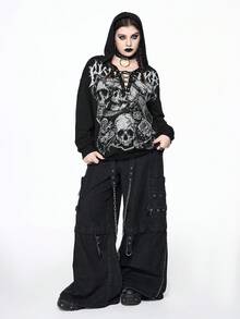 Goth Sudadera holgada de manga larga con estampado de calavera gótica de talla grande