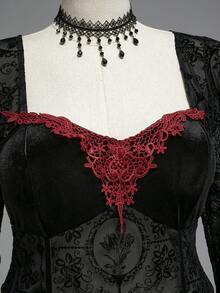 Goth Vestido de talla grande con estilo gótico, lujoso, de terciopelo, con bajo de sirena, mangas de campana, parches de encaje floral de rosa. Vestido de talla grande con mangas de campana y bajo de sirena para otoño/invierno para mujeres, para fiestas, banquetes, cenas. Vestido de gala formal de talla grande para otoño/invierno.
