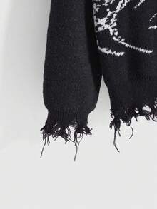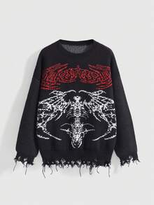 Grunge Punk Suéter holgado de punto largo con alas de esqueleto oscuro y estilo punk talla grande