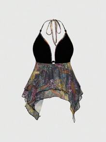 Goth Camiseta sin tirantes asimétrica con estampado de paisley en estilo retro hippie occidental para tallas grandes