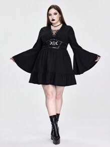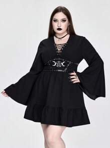 Goth Vestido corto de encaje con línea A y bordado de luna de palacio gótico vintage de talla grande