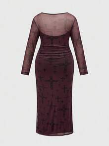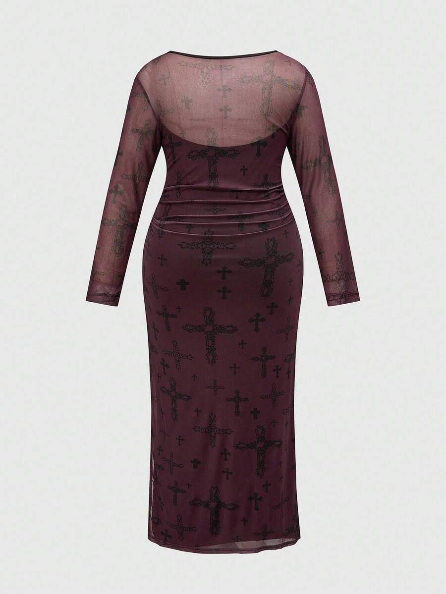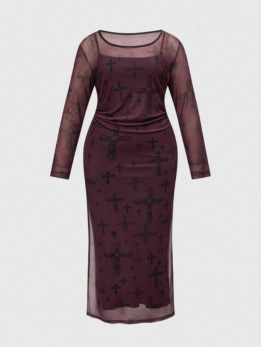 Goth Vestido largo de manga larga con malla transparente, cintura ceñida, estilo gótico oscuro y romántico vintage, talla grande, para Halloween