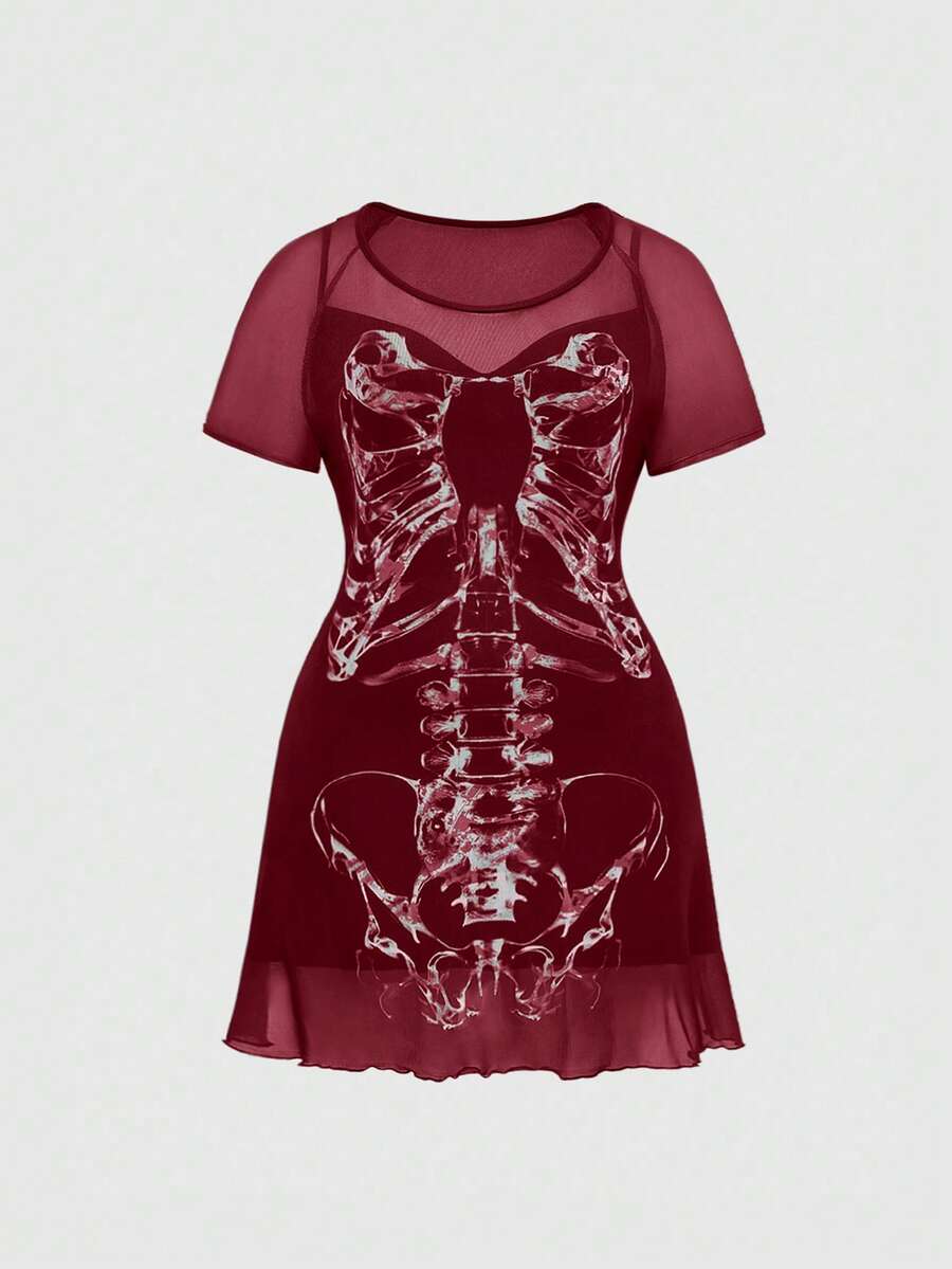 Goth Vestido ajustado gótico oscuro vintage romántico de talla grande con esqueleto