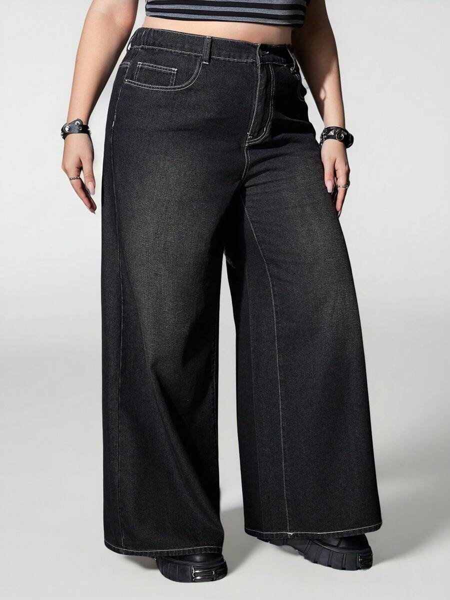 Grunge Punk Jeans holgados y sueltos de talla grande con aplicaciones de strass con diseño de telaraña en estilo vintage streetwear