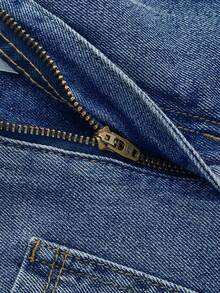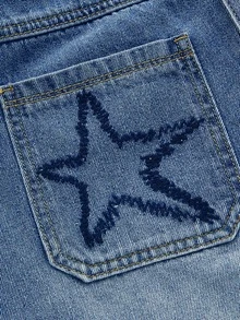 Grunge Punk Pantalones cortos de mezclilla con estampado de estrellas y efecto desgastado para mujeres de talla grande con ajuste holgado y casual