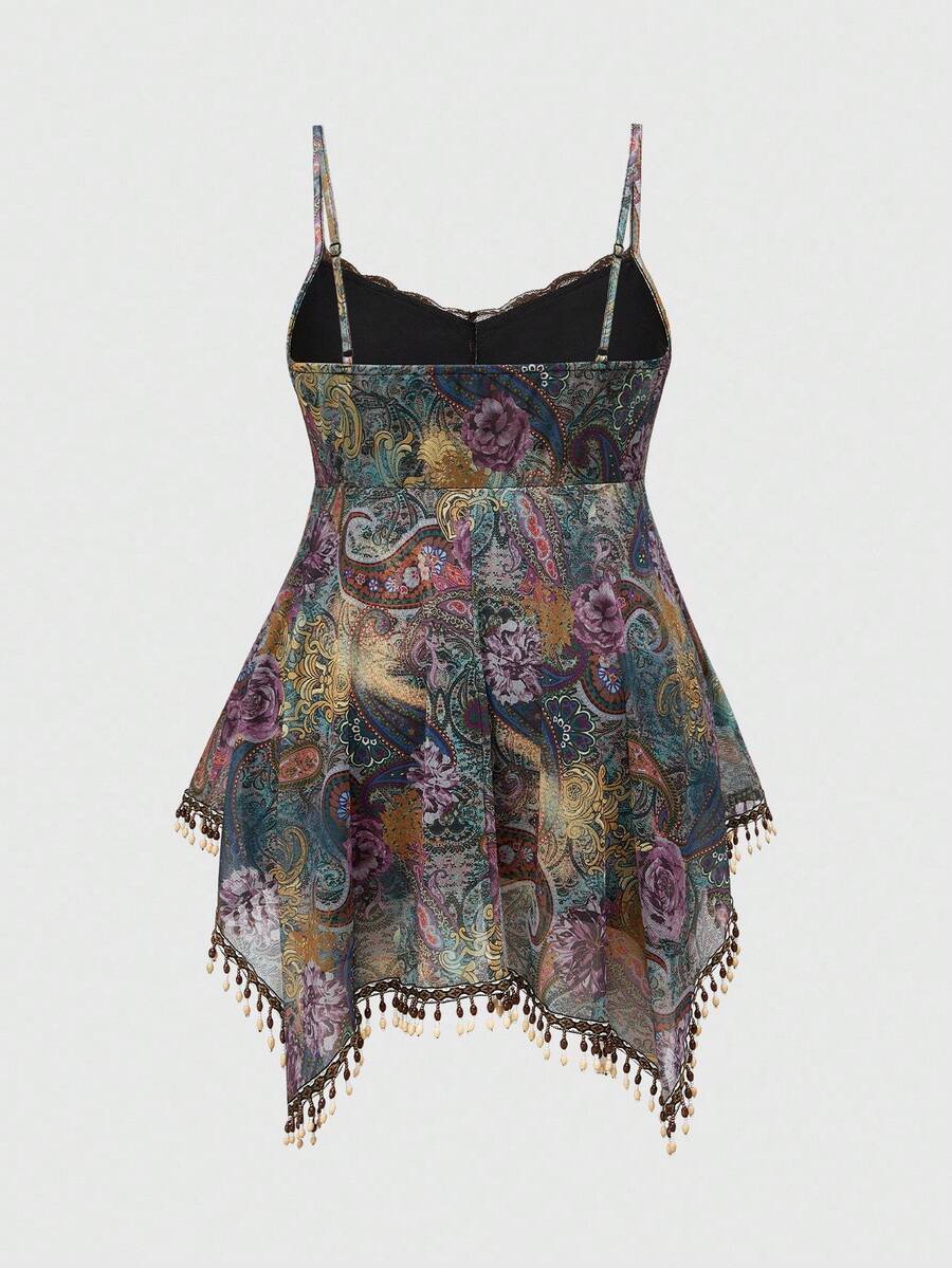 Hippie Blusa sin mangas con estampado de paisley, flecos con cuentas y estilo retro hippie para mujer de talla grande, ideal para festivales de música western