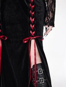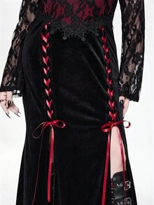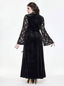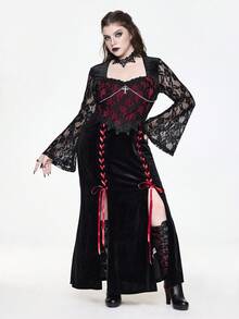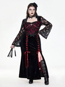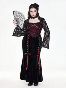 EDITION Vestido de sirena estilo gótico vintage de talla grande para mujer con encaje, patchwork, contraste de color y decoración con cadena cruzada