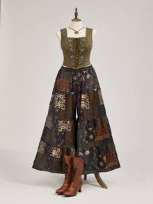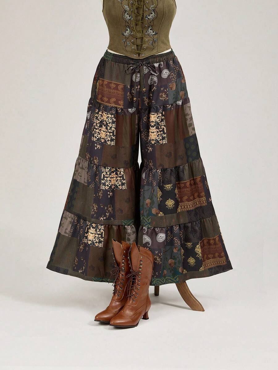 Hippie Pantalones de pierna ancha con estampado de retazos vintage estilo Cottagecore para mujer de talla grande