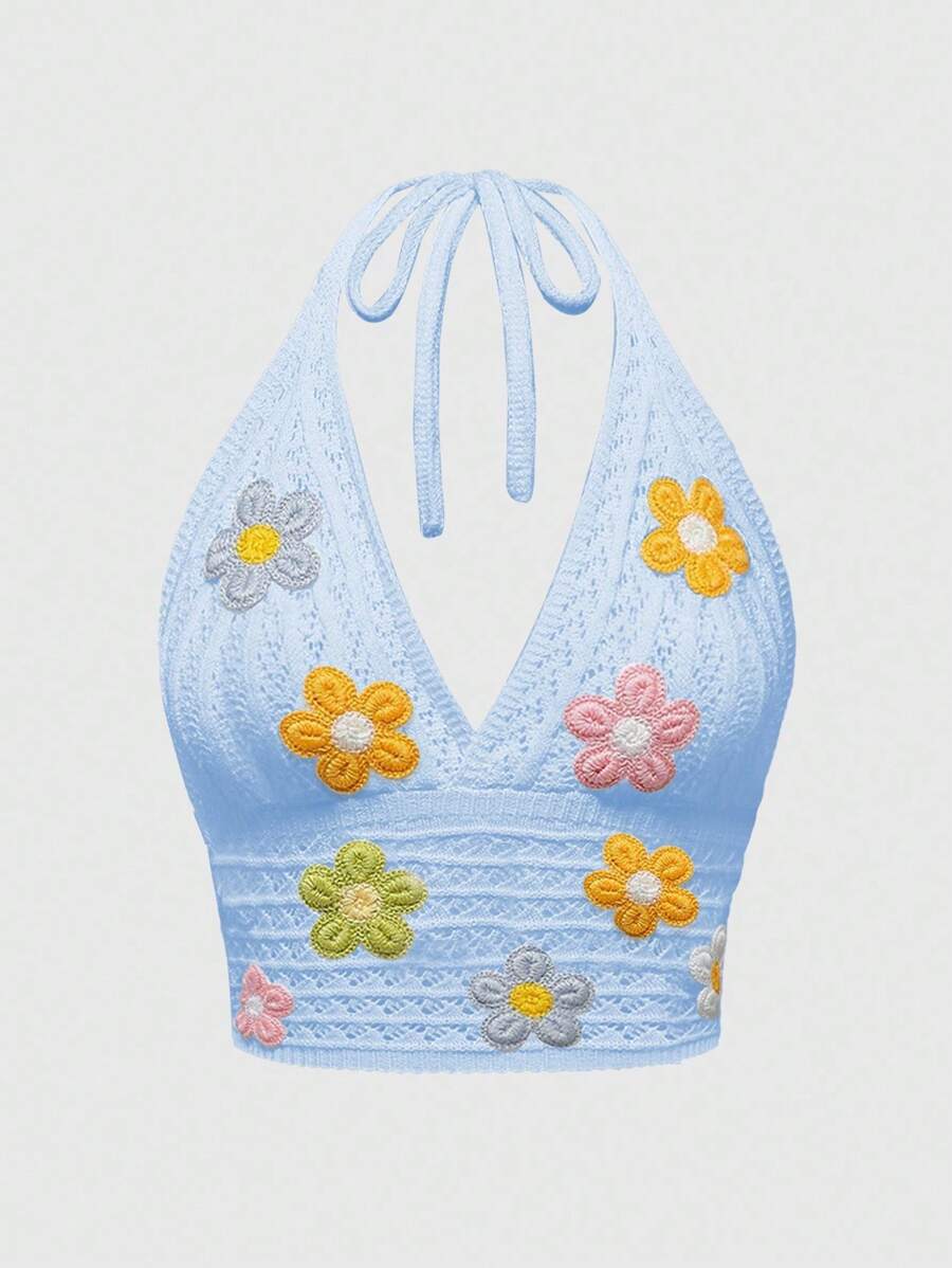 Camiseta de tirantes finos con decoración floral 3D para mujer talla grande