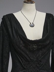 EDITION Blusa de manga acampanada con cuello halter, hombros descubiertos, estampado de paisley y cordones en la cintura, para mujer talla grande, Halloween