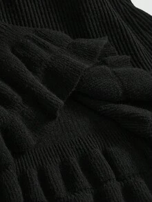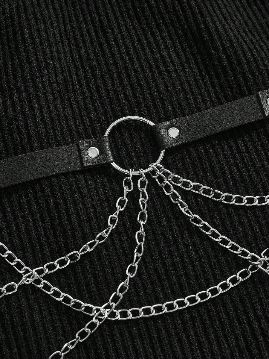 Goth Vestido de suéter gótico retro de talla grande para mujer con cuello volante, hombros descubiertos, mangas con volantes, correa de cuero y cadena metálica en la cintura, vestido de suéter negro de otoño/invierno, vestido de suéter vintage negro de moda para mujer