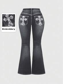 Grunge Punk Jeans casuales de talla grande para mujer con estampado gráfico grunge, estilo escolar