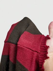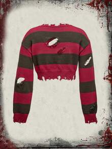 ROMWE Avant Suéter corto asimétrico con detalles desgarrados y a rayas para mujer de talla grande, Navidad