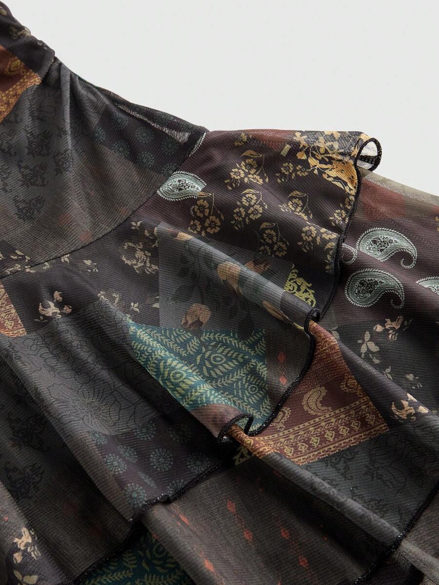 Fairycore Vestido halter con volantes y estampado de anacardo para mujer de talla grande de vacaciones