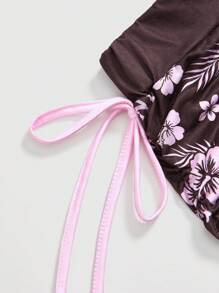 Fairycore Shorts mini con estampado todo sobre de hibisco y bordado en inglés, para vacaciones, en tallas grandes de estilo Y2K