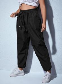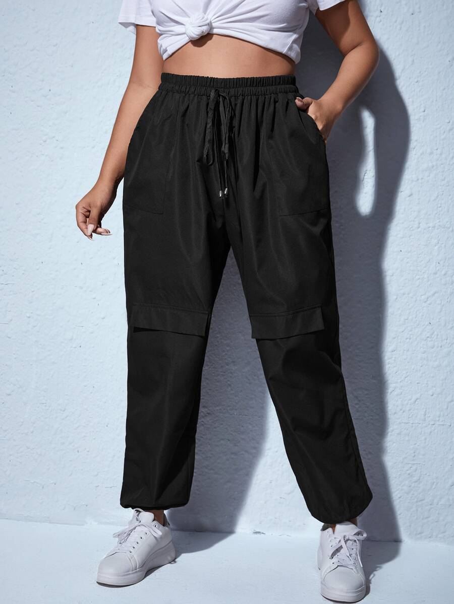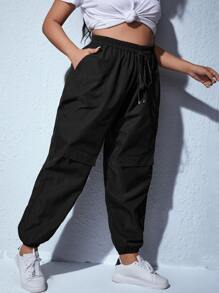 Pantalones rompevientos unicolor con bolsillo oblicuo