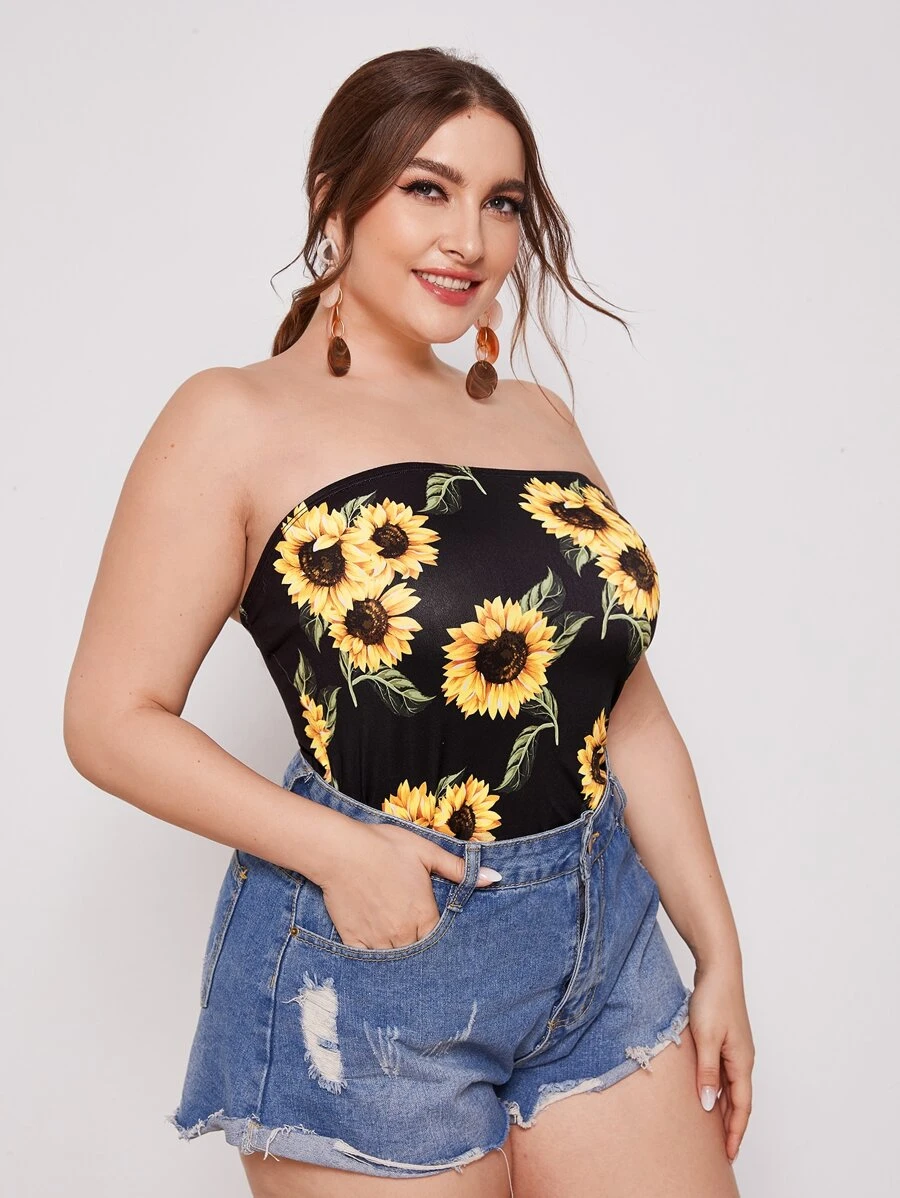Top tubo con estampado de girasol