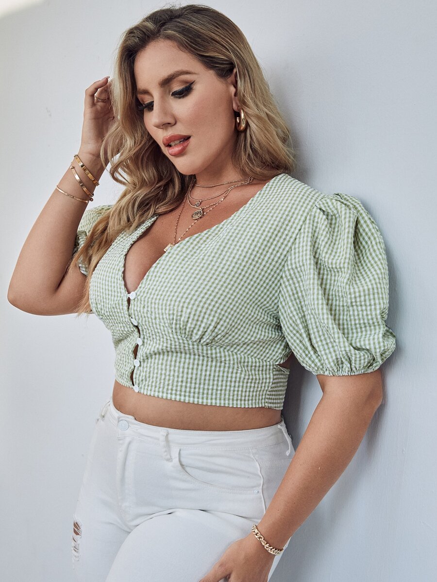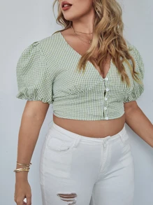 Top de guingán de espalda abierta con cordón