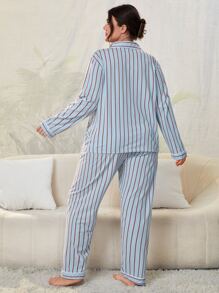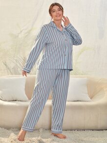 Conjunto de pijama de rayas verticales ribete en contraste