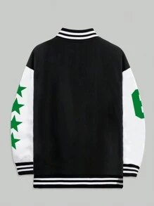 Prep Hombres 1 pieza Cazadora de universidad con estampado de estrella y slogan ribete de rayas de hombros caídos