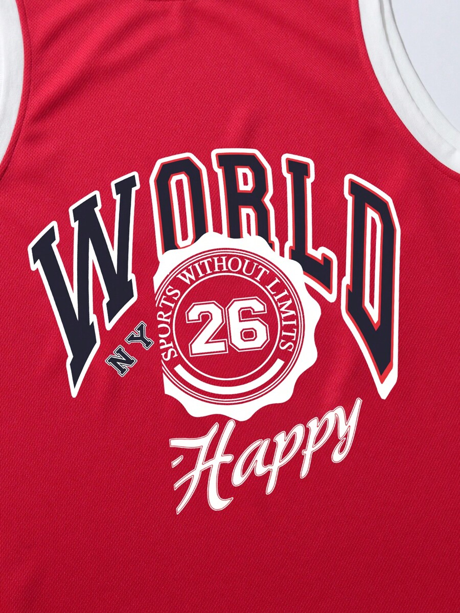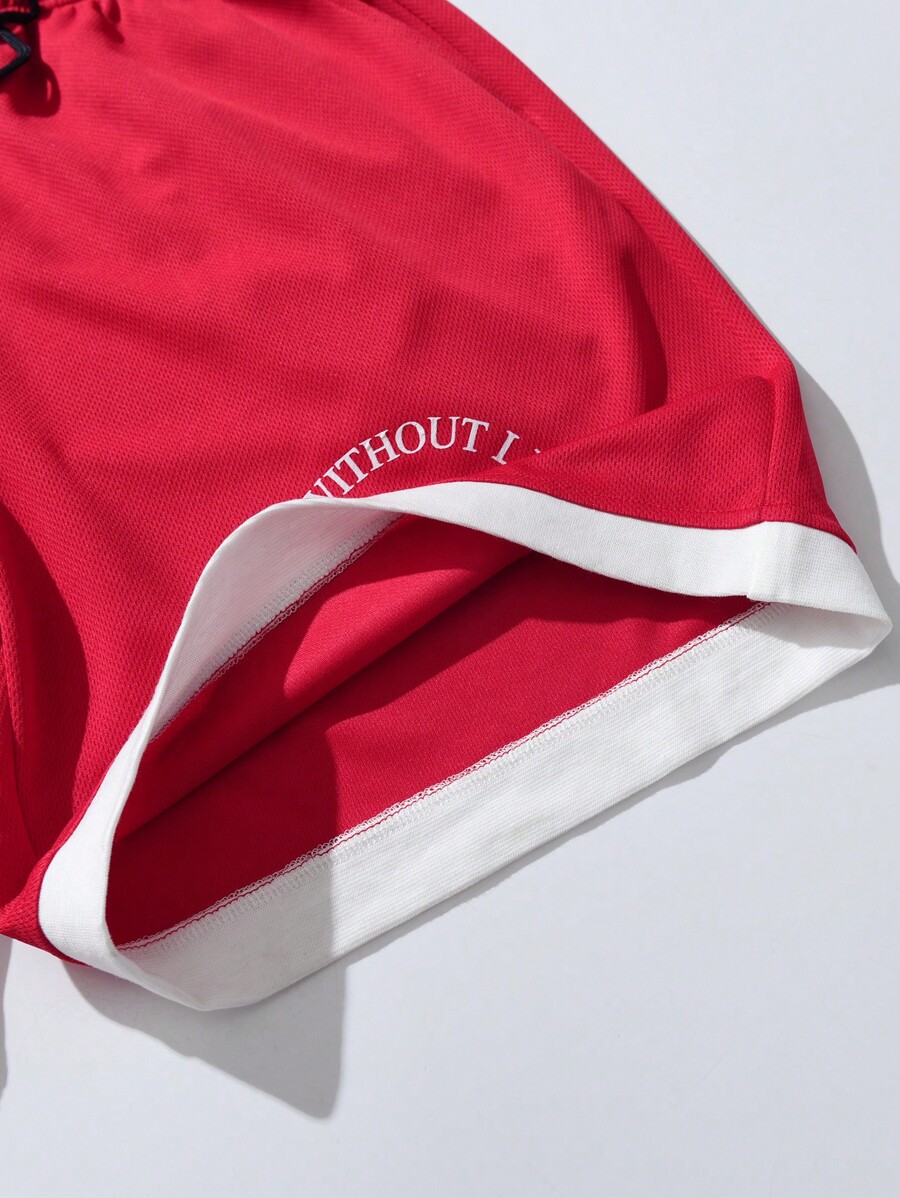Prep Conjunto deportivo para hombres con diseño gráfico de letras y detalles de contraste, traje deportivo, conjunto para entrenamiento