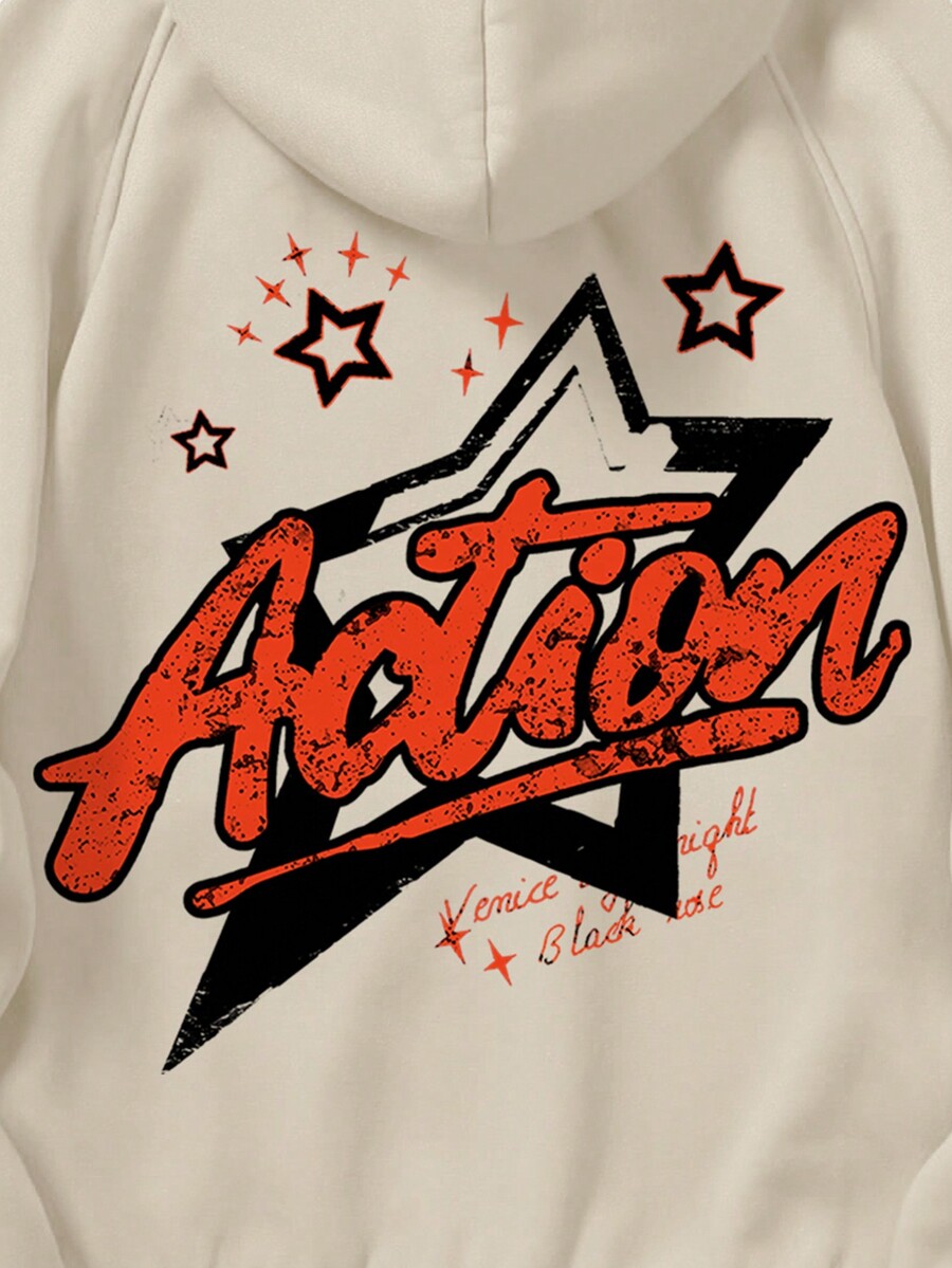 Prep Hombre Estrella Y Letra Gráfico Camiseta De Manga Raglán Con Capucha Térmica Y Cordón De Ajuste