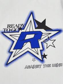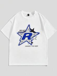 Prep Hombres Camiseta de hombros caídos con estampado de estrella y slogan