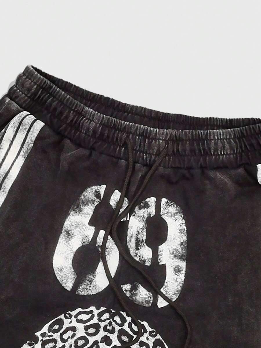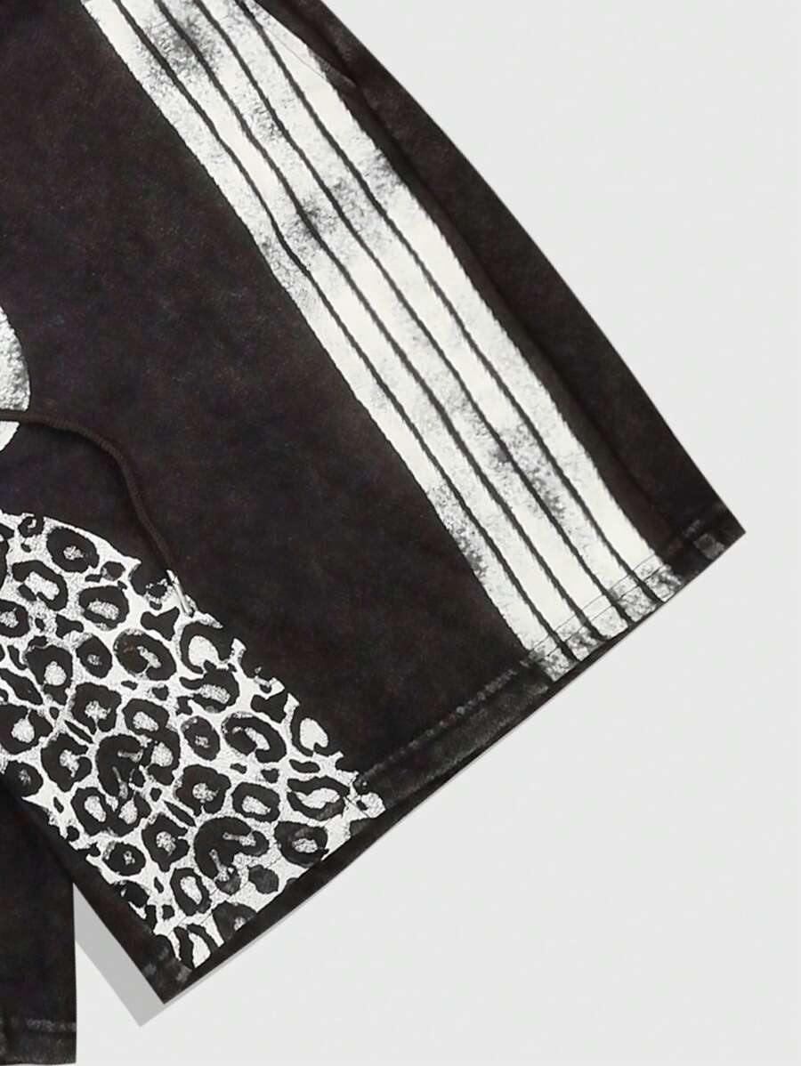 Prep Pantalones cortos de hombre con cintura de cordón estampado con rayas y estampado de leopardo