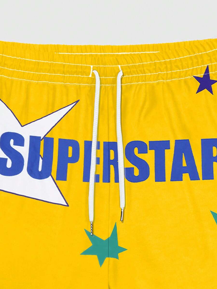 Prep Pantalones cortos casuales de hombres con estampado de estrella y letra, para el verano