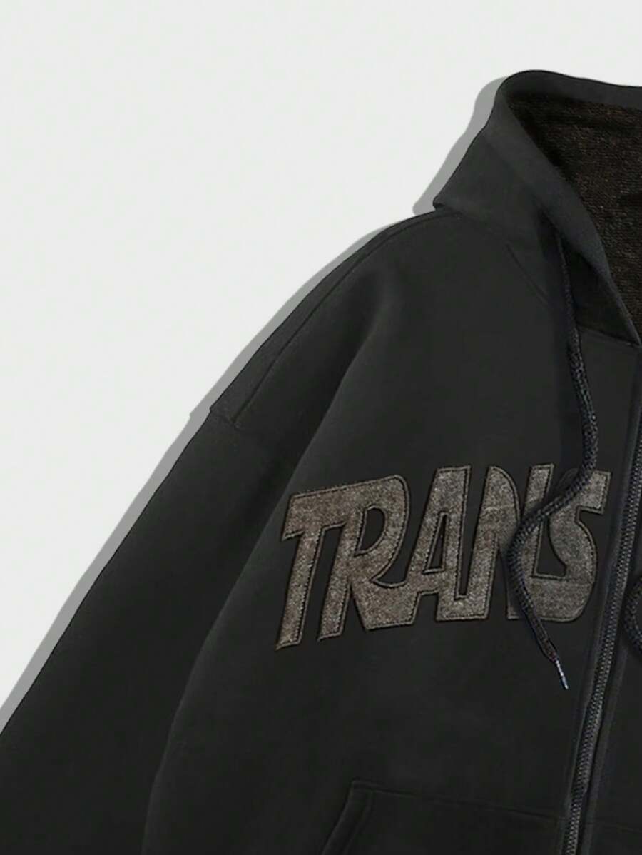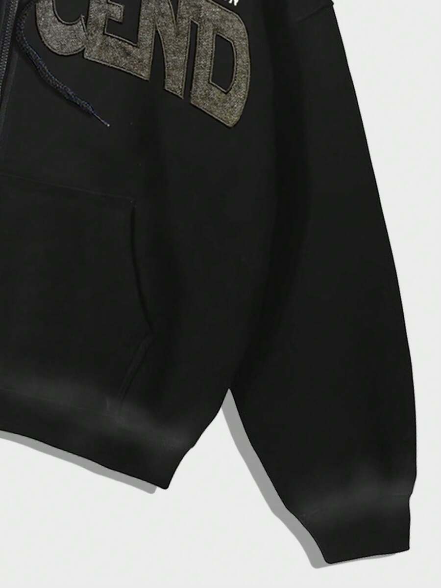 Prep Sudadera con capucha casual de manga larga con cierre frontal y detalles de estampado de letras para hombre
