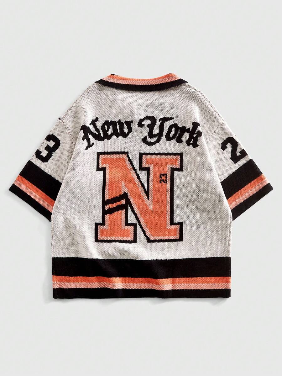 Prep Suéter de punto con cuello de fútbol retro para hombres