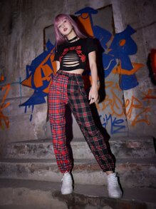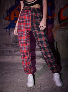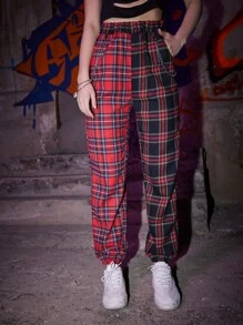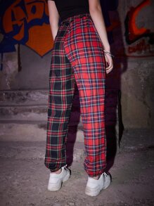 Grunge Punk Pantalones de color combinado de cuadros con cadena