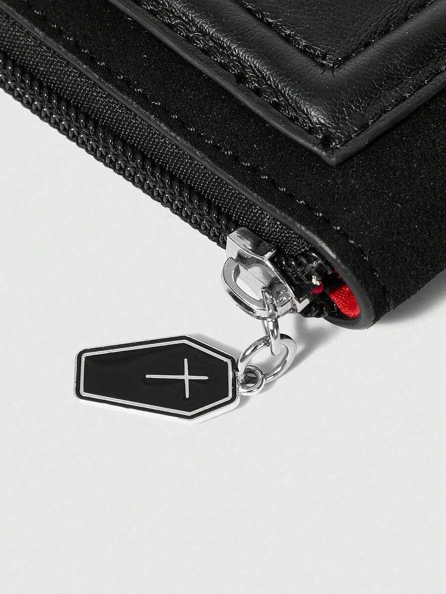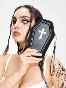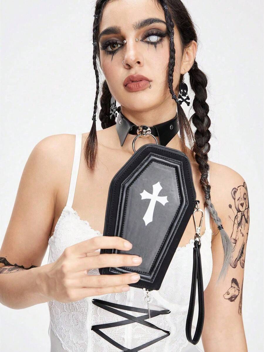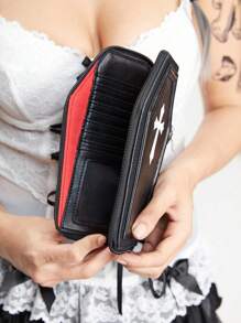 Grunge Punk Monedero con estilo punk multifuncional para tarjetas de crédito, monedero con cruz gótica, bolsa con cremallera de moda para viajes/fiestas estilo Y2K, unisex, Halloween