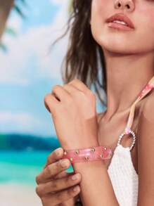 ROMWE Avant 1 pieza Brazalete de mujer transparente con rhinestones de resina, apto para uso diario