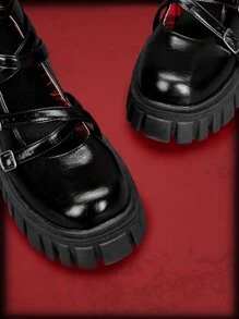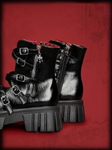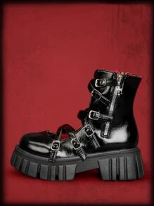 ROMWE Avant Botas de sandalias con diseño de hebilla con cremallera lateral plataforma