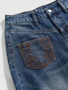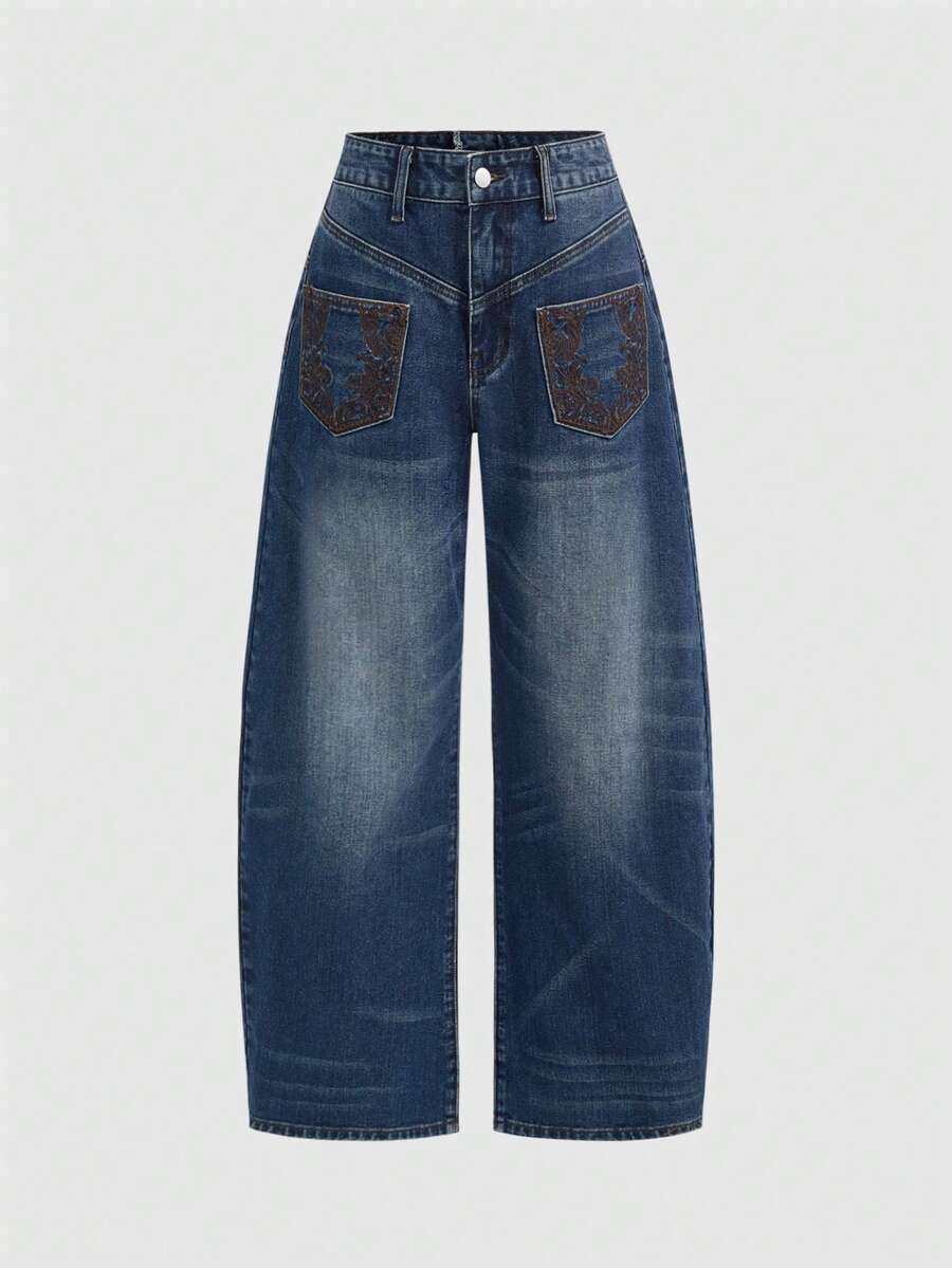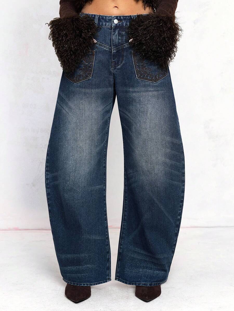 ROMWE Avant Jeans maxi desgarrados de talle bajo, pierna ancha y ajuste holgado, con diseño asimétrico y desconstructed, con bordados, estilo American Baddie